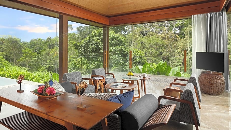 Take a refreshing dip in your private swimming pool set in beautifully manicured gardens, soak in the expansive bathtub, or sunbathe on the terrace amid lush valley or tropical forest. Guests enjoy the following benefits: - Welcome drink and cold towel upon arrival - Fresh fruit selection upon arrival - Daily 4 bottles of mineral water - Daily afternoon tea at Tree Bar - Daily activities based on schedule - Free shuttle service to Ubud Center based on schedule.